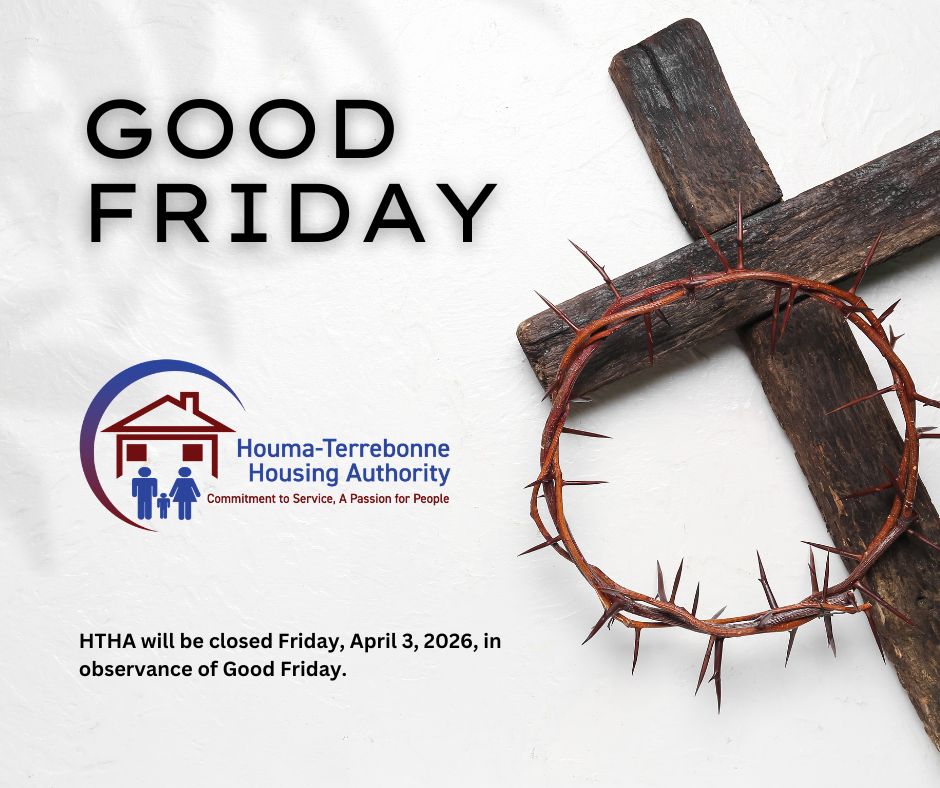 The Houma Terrebonne Housing Authority (HTHA) will be closed on Friday, April 3, 2026, in observance of Good Friday.