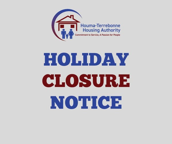 The Houma Terrebonne Housing Authority (HTHA) will be closed on Monday, February 16, 2026 in honor of Presidents’ Day and will remain closed on Tuesday, February 17, 2026 in observance of Mardi Gras.
